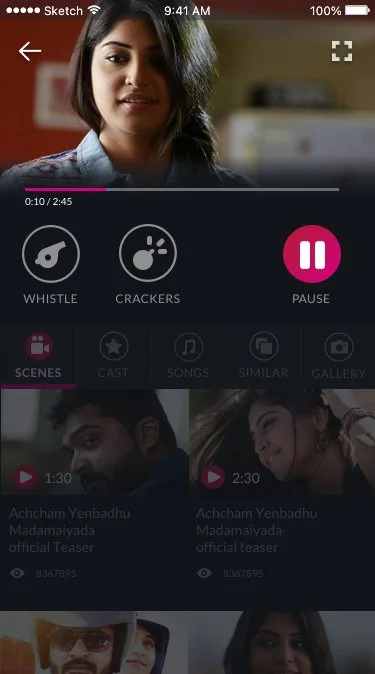 We endeavoured to recreate this festive ambience within our app by gamifying it. Users accrue crackers and whistles as they watch, which can be used while watching films and scenes, and receive rewards like wallpapers showcasing their beloved stars.